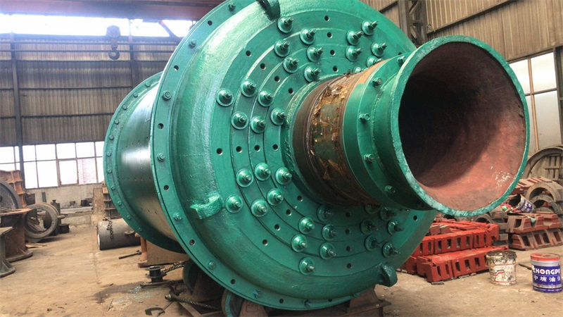 溢流型球磨機(jī)筒體用厚度15-36mm的鋼板焊接而成,在筒體的兩端焊有鑄鋼制造的法蘭盤,用螺栓將端蓋2和3與法蘭盤連接在一起,二者須精密加工和配合,因?yàn)槌休d磨礦機(jī)質(zhì)量的中空軸頸焊在端蓋上。在筒體上開有1-2個(gè)人孔,供檢修和更換襯板用。筒體和端蓋內(nèi)部敷設(shè)有襯板5。端蓋上的中空軸頸支承在主軸承4上。主軸承常用的是滑動(dòng)軸承,其直徑很大,但長度很短。軸瓦用巴氏合金澆鑄,與一般滑動(dòng)軸承不同之處在于僅僅下半部有軸瓦。整個(gè)軸承除軸瓦用巴氏金澆鑄外,其余用鑄鐵制成。由于球磨機(jī)的跨度和載荷很大,將發(fā)生一定程度的撓曲,而且制造和裝配的誤差也難以保證準(zhǔn)確的同心度,因此主軸承制成自動(dòng)調(diào)心滑動(dòng)軸承,為防止軸瓦轉(zhuǎn)位過大而從軸承座中滑出,在軸承座與軸瓦的球面***放一圓柱銷釘。